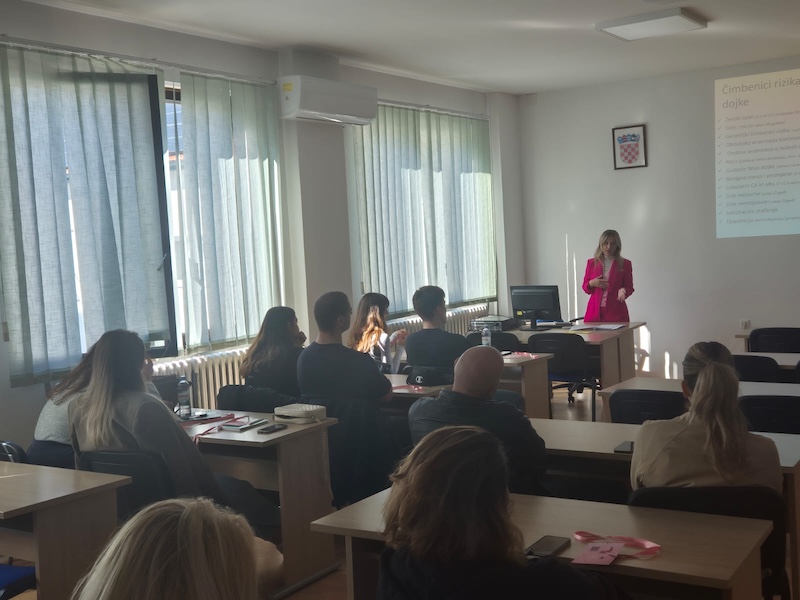 Nakon 1. međunarodnog simpozija “ Znanjem do zdravlja “ kojeg smo obilježili 17.lipnja 2025.godine vođeni od prof.dr.sc. Edita Borić  te dekana fakulteta dentalne medicine i zdravstva Osijek prof.dr.sc Aleksandar Včev  nastavljamo s porukom brige o zdravlju i razvijanju svijesti o važnosti samopregleda dojke. Predavačica, Martina Govorko, univ.mag.med.techn. je  održala predavanje o karcinomu dojke, važnosti prevencije i ranoj dijagnostici.